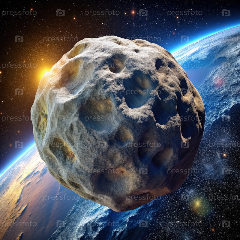 Исследование уникальных особенностей астероида, проходящего близко к Земле с красивым фоном восхода солнца, видимым из космоса