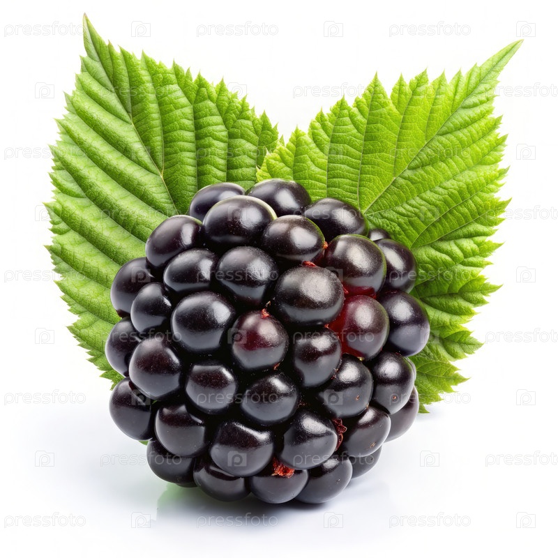 Свежие черники, окруженные ярко-зелеными листьями на чистом белом фоне