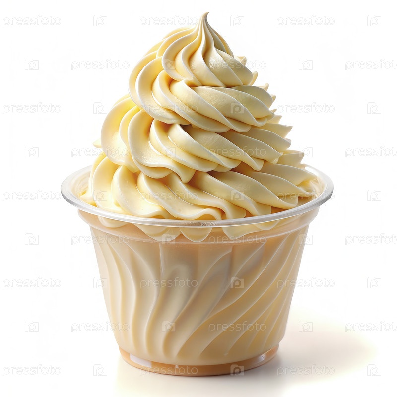 Кремный битый десерт в пластиковой чашке на белом фоне со стандартной шкалой