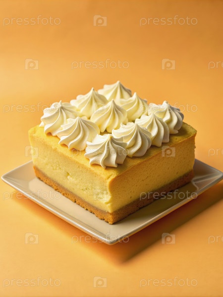 Квадратный торт с белым сливком на светло-оранжевом фоне