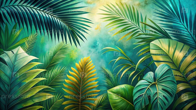 Богатое тропическое листво с ярко-зелеными листьями, освещенным теплым летним светом