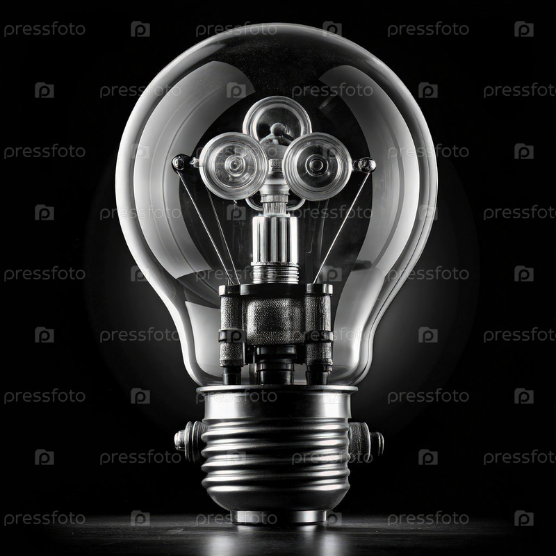 Ветхая лампочка кинопроектора отображается в вертикальном положении на черном фоне