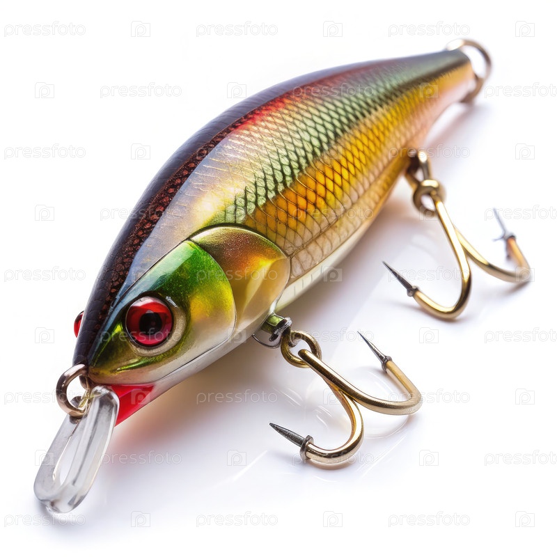 Красочная приманка на белом фоне для отображения рыболовных инструментов