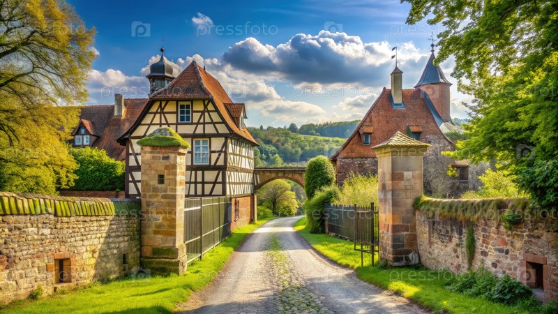 Мирная сельская дорога в немецкой деревне во время девятнадцатого века