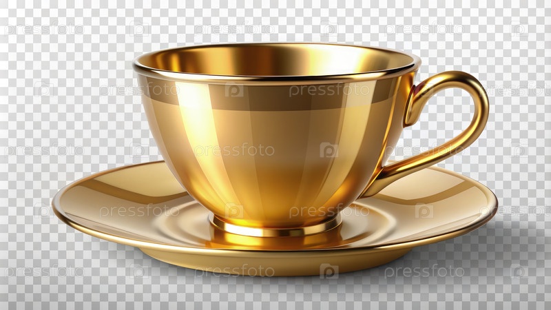 Элегантный золотой чайник и соответствующий комплект тарелок отображаются на прозрачном фоне, демонстрируя свой классический дизайн и роскошную отделку
