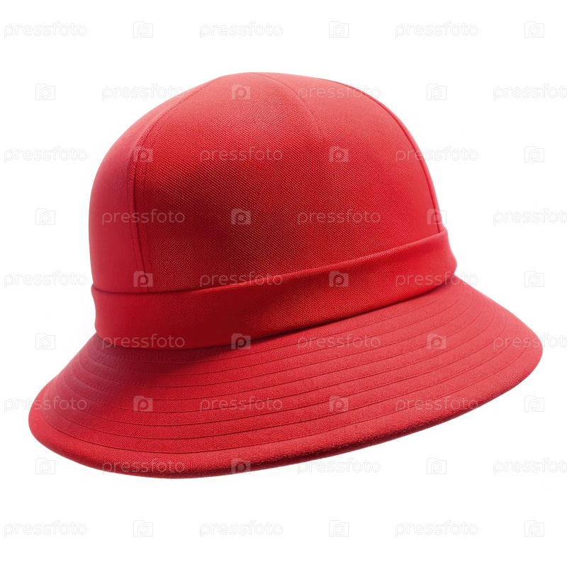 Красная шляпа с изогнутым краем, рассматриваемая спереди на белом фоне