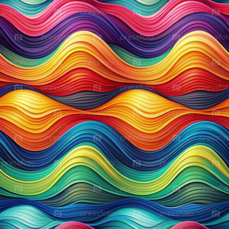 Вибрирующие абстрактные волновые узоры с красочными слоями в различных оттенках, протекающими по холсту