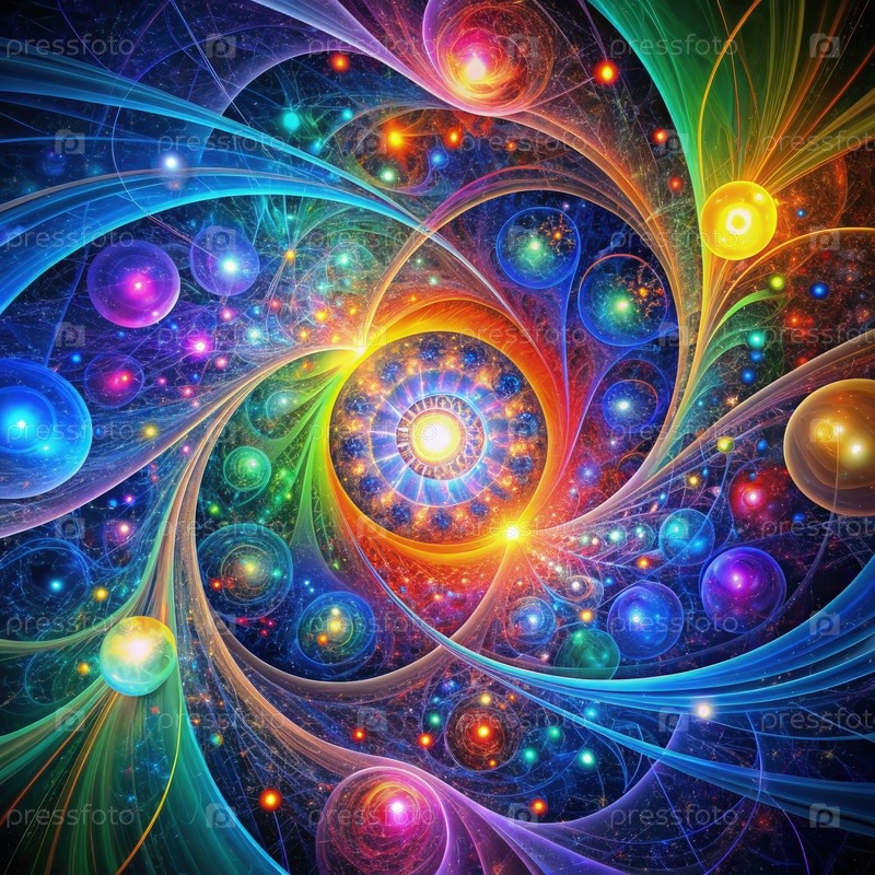 Абстрактное представление квантового компьютерного масштаба X с яркими вихревыми цветами