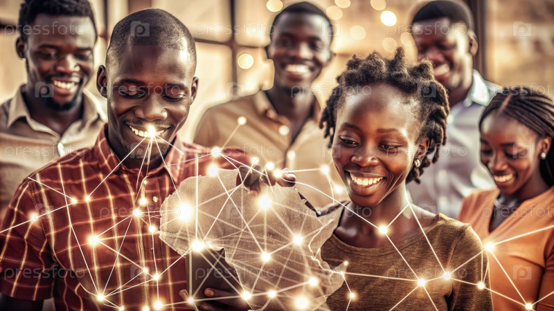 Молодые африканцы сотрудничают над цифровым проектом в общественном пространстве Африки