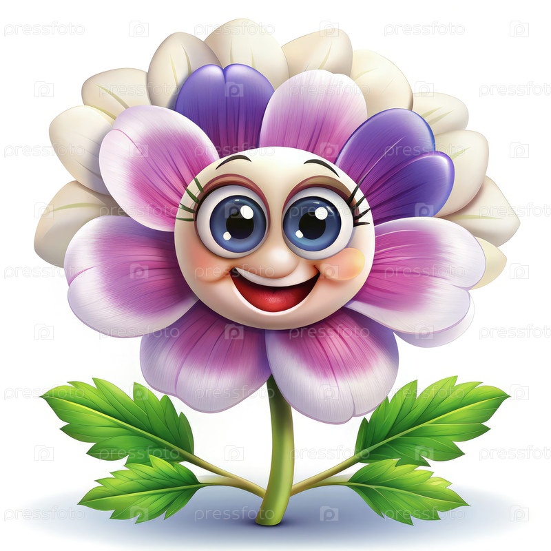 Веселый талисман цветка анемона с улыбающимся лицом на белом фоне