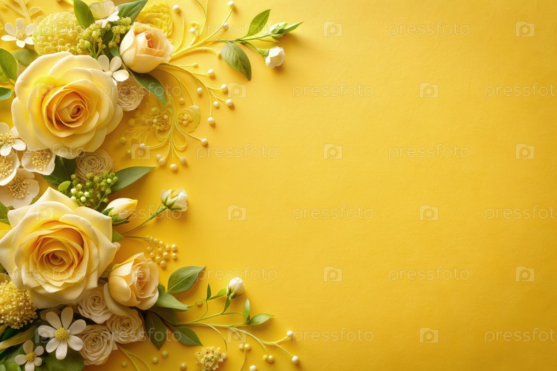 Элегантный желтый фон свадебного приглашения, украшенный цветочными элементами