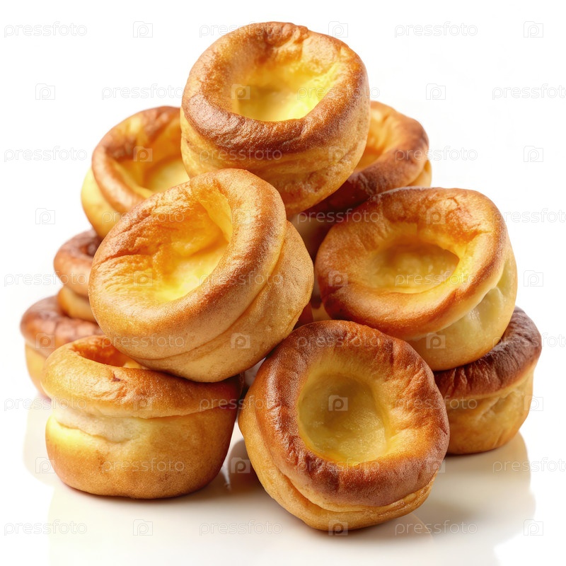 Вкусные йоркширские пудинги стоят высоко на белом фоне