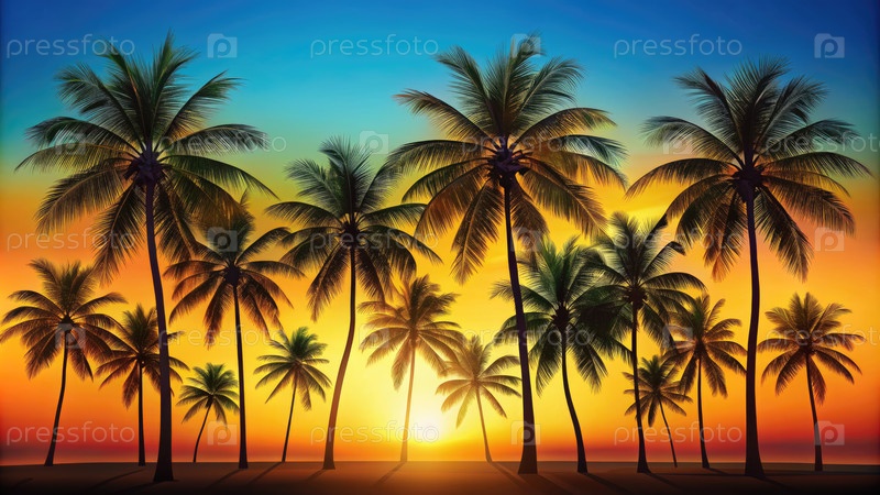 Силуетированные тропические пальмы против яркого захода солнца над спокойным океаном