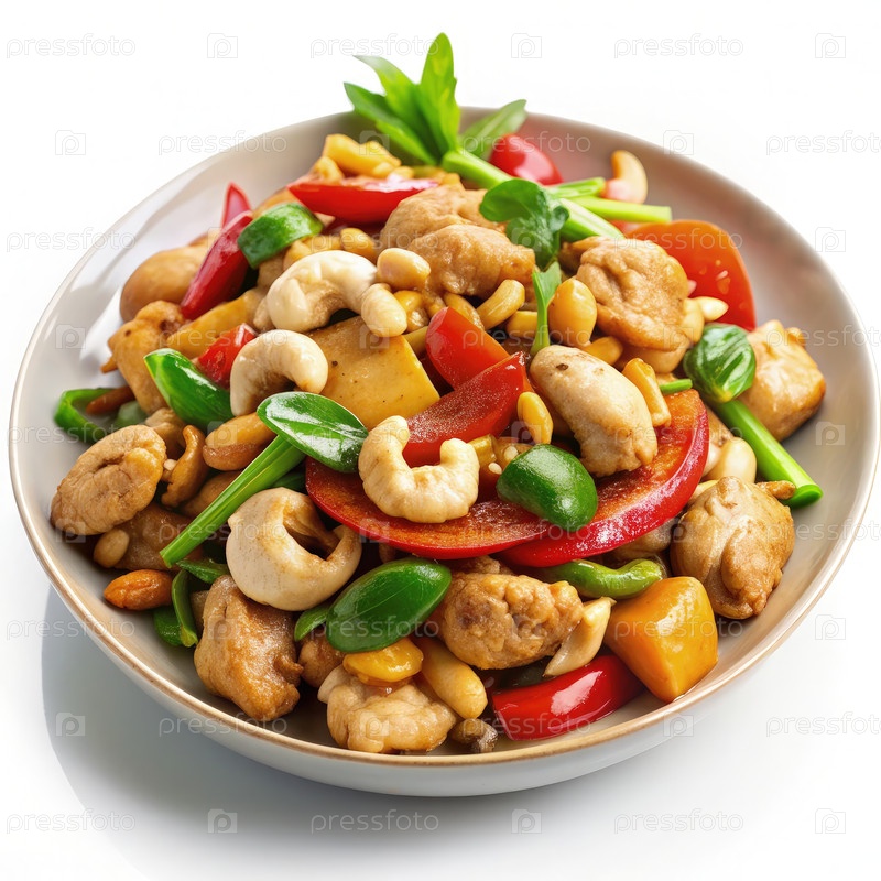 Тайский цыпленок и орехи кешью перемешайте с овощами в миске