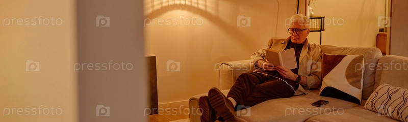 Header of Старший белый мужчина отдыхает на диване Читать рассказ в книге твердой обложки