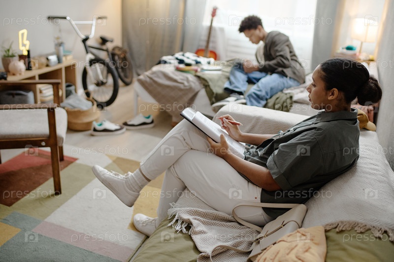 Молодая взрослая чернокожая женщина проводит оценку социальной работы с подростком-клиентом