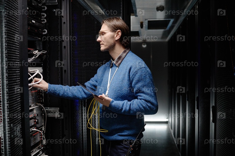 Adult Caucasian Man Управление серверным оборудованием в среде центра обработки данных