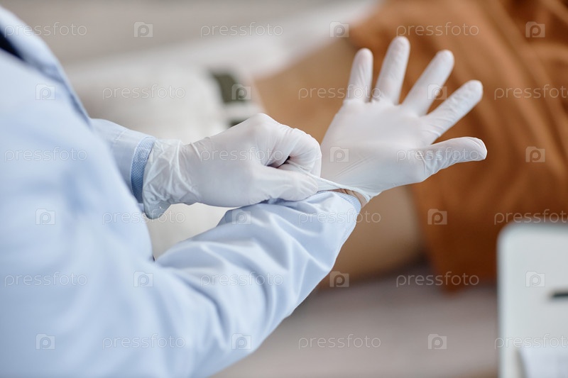 Уролог надевает перчатки перед осмотром пациента мужского пола