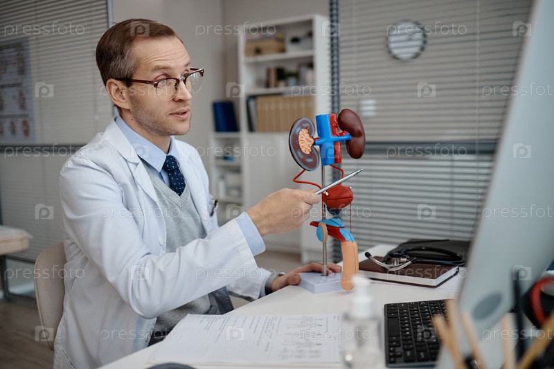 Кавказский средневековый мужской уролог, объясняющий анатомию мочевой системы