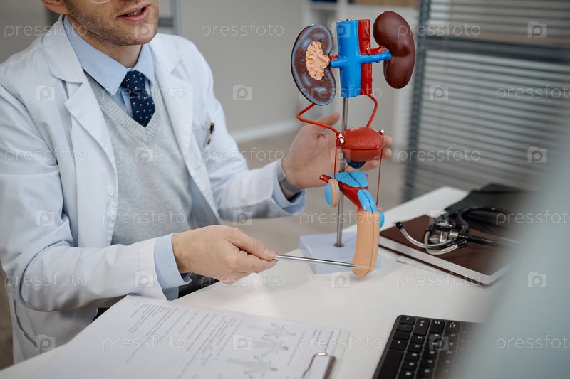 Кавказский средневековый мужской уролог, объясняющий модель мочевой системы человека