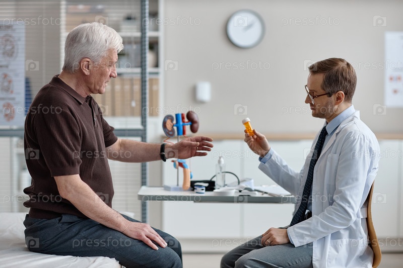 Кавказский старший мужчина Консультации Мужской уролог Обсуждение рецептурных лекарств