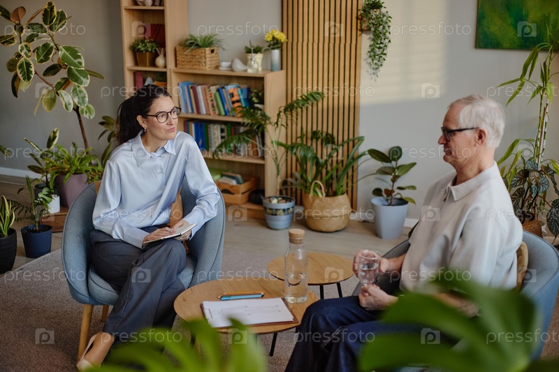 Кавказская женщина среднего возраста психолог консультирование старший кавказский мужчина