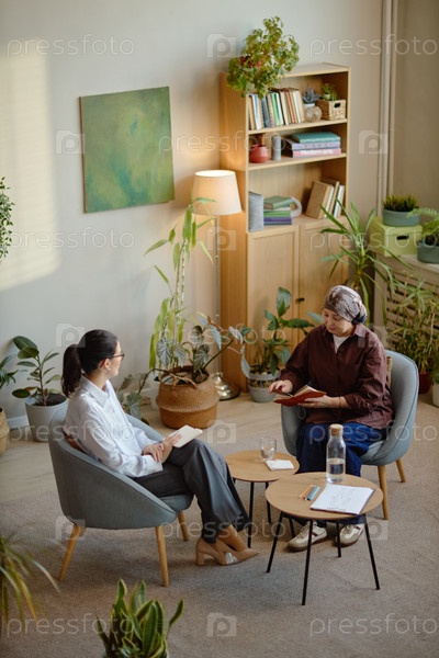 Кавказская женщина среднего возраста консультирует старшую кавказскую женщину в сессии терапии
