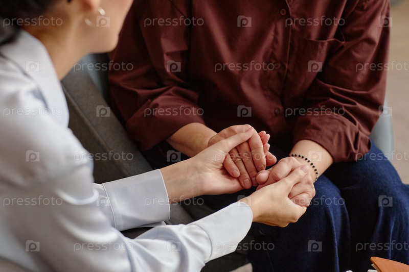 Молодая взрослая белая женщина утешает женщину средних лет во время консультации