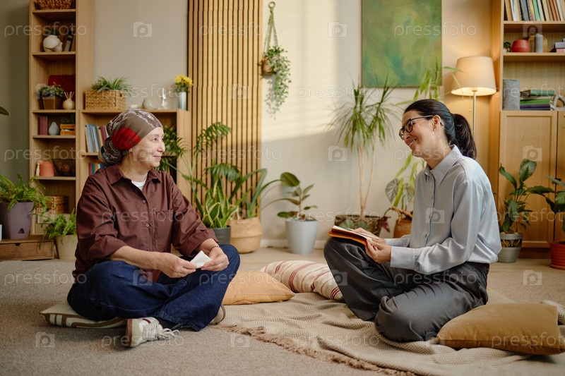 Женщина, участвующая в терапевтическом разговоре со старшим психотерапевтом