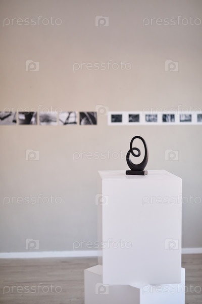 Абстрактная скульптура, стоящая на пьедестале в экспозиции галереи современного искусства