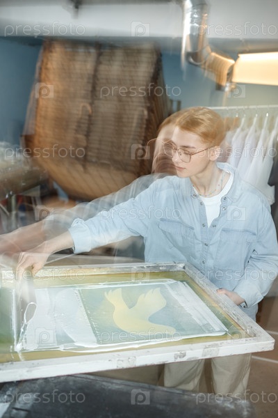 Вертикаль молодой взрослой женщины Экранная печать Художественное произведение в творческой студии