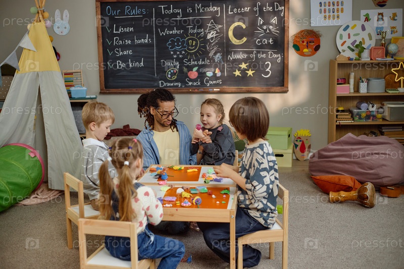 Детский сад и мультиэтническая учительница молодых взрослых создают искусство вместе