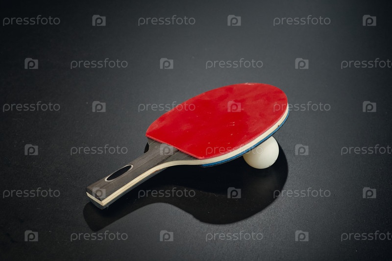 Теннисная веслаль, отдыхающая на мяче на темной поверхности в студии