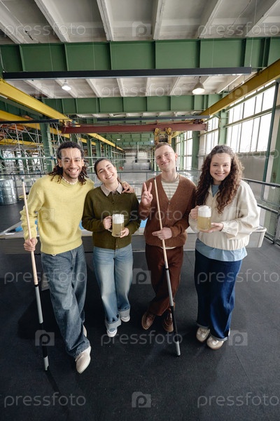 Вертикаль разнообразных молодых взрослых улыбаются и держат сигналы о бассейне в помещении