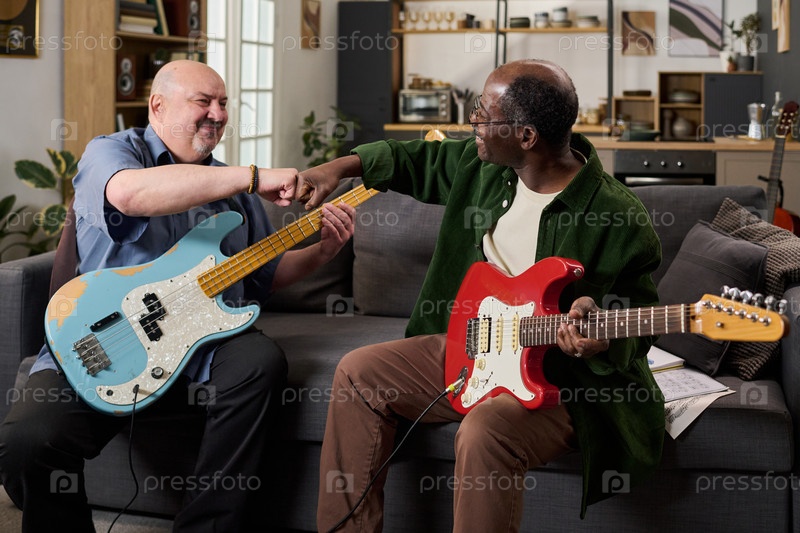Кавказский мужчина среднего возраста и старший чернокожий человек делятся кулаком, пока мешают
