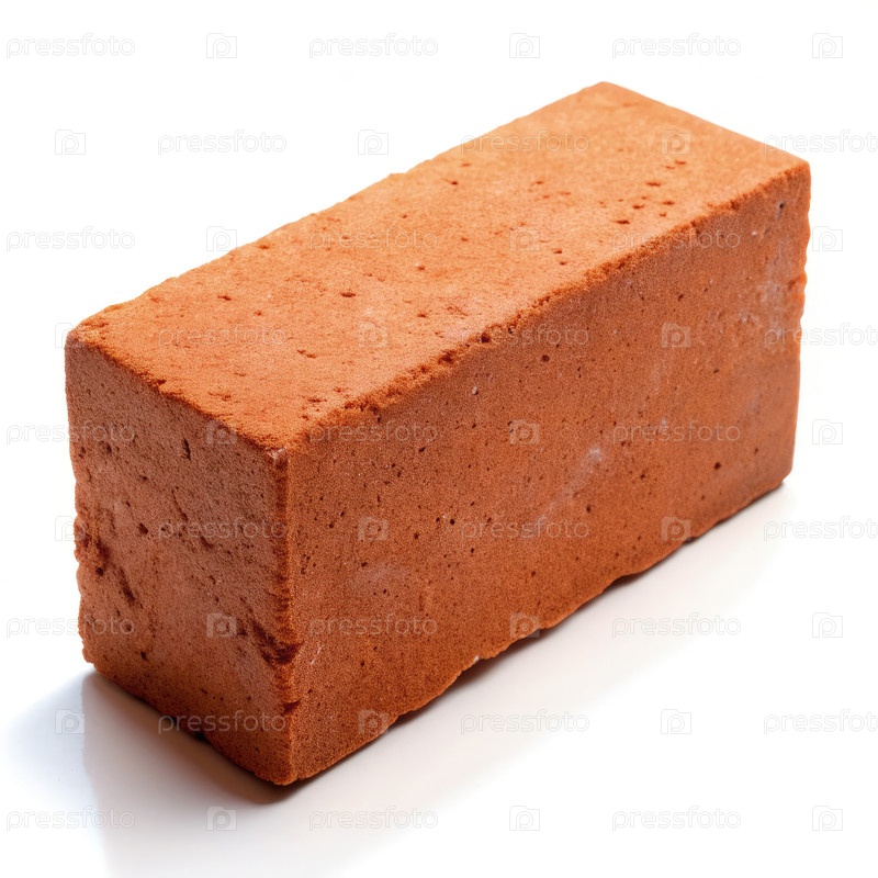 Один красный кирпич из глины, опирающийся на чистый белый фон, демонстрирует свою прямоугольную форму и уникальную текстуру в студии