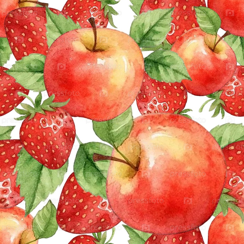 Бесшовный паттерн клубника и яблоки
