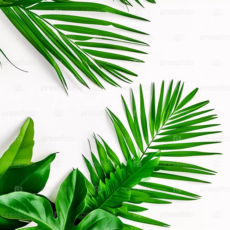 Яркие цветы и пальмовые листья расположены вместе на простом фоне.Этот красочный дисплей идеально подходит для украшения в солнечной погоде днем Generative AI