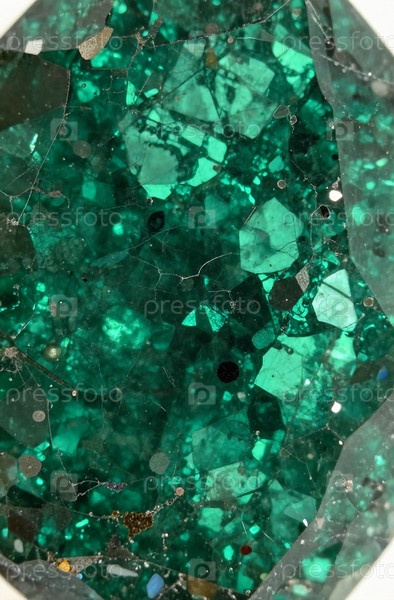 Это произведение искусства отображает сложную текстуру изумрудного камня со многими блестящими поверхностями, которые отражают свет различными способами, создавая яркий дисплей зеленых оттенков Generative AI