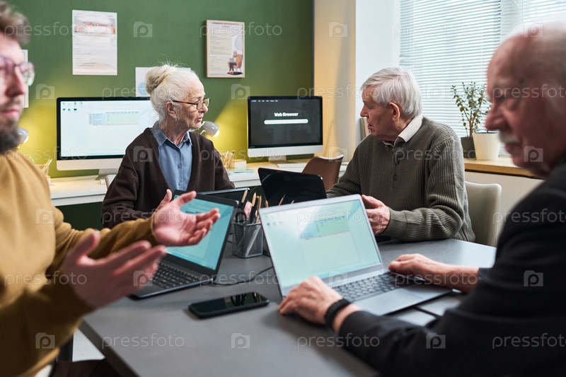 Высшие кавказские мужчины и женщины вместе посещают курс компьютерной грамотности