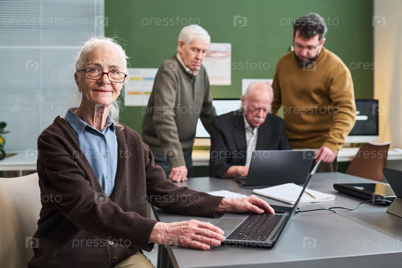 Кавказская женщина посещает курс компьютерной грамотности с групповым обучением
