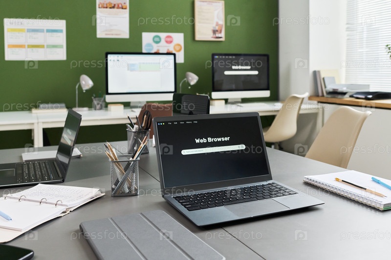 В классе демонстрируются ноутбуки и мониторы во время курса современной компьютерной грамотности