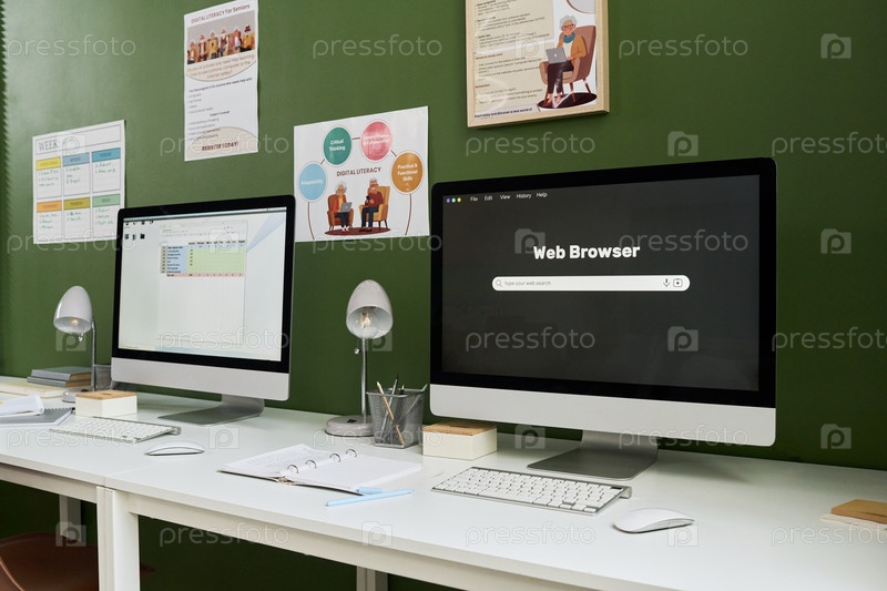 Компьютерные рабочие станции ждут студентов для обучения современному курсу грамотности