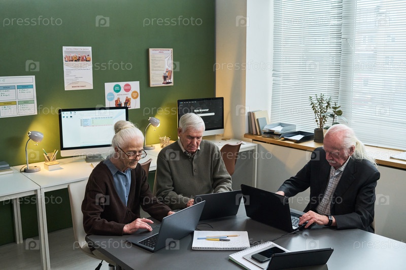 Кавказские мужчины и женщины практикуют компьютерную грамотность на ноутбуках Senior