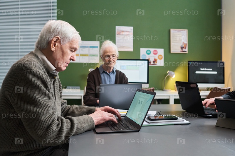 Старший кавказский мужчина и женщина вместе посещают курс компьютерной грамотности