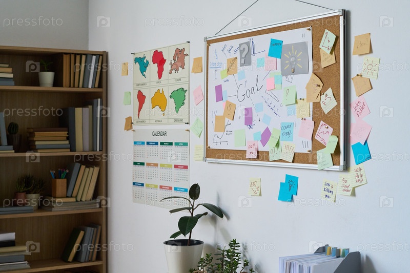 Корковая доска для отображения красочных наклеек и планирования целей в офисной обстановке