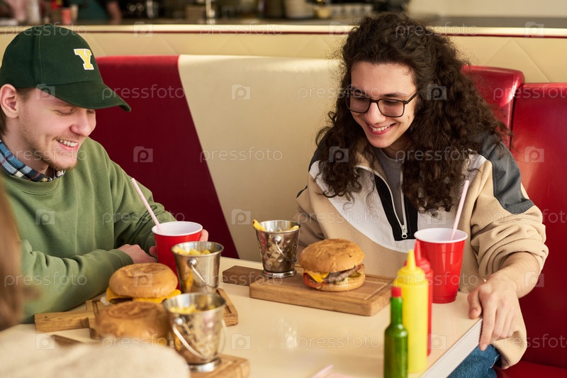 Белые мужчины наслаждаются обедом вместе за столом в ресторане Young Indoors