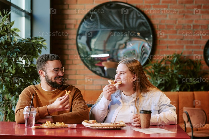 Молодой мужчина и женщина наслаждаются обедом вместе за столом ресторана