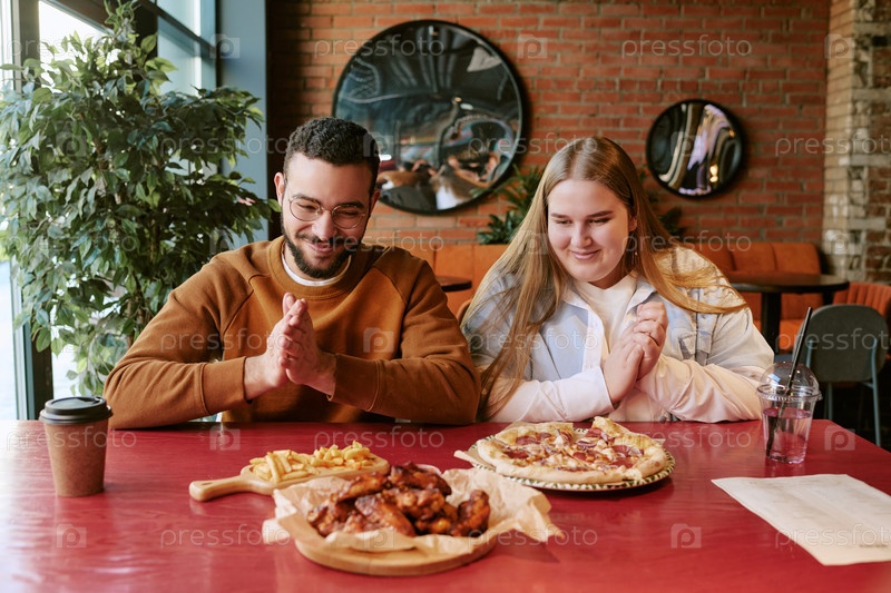 Молодой мужчина и женщина ожидают еды за столом в ресторане