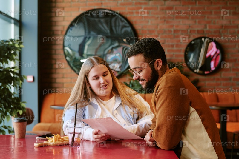 Молодая женщина и молодой мужчина с Ближнего Востока вместе просматривают документы